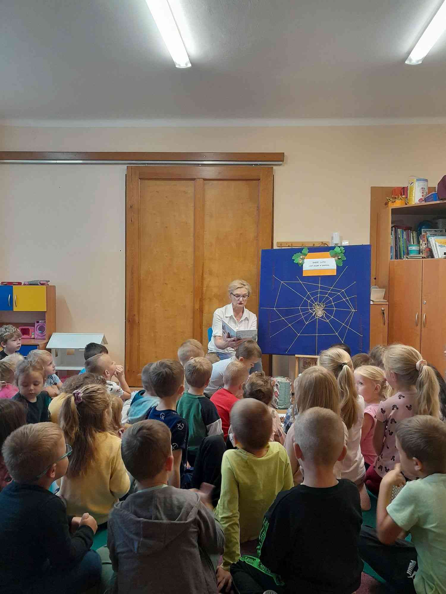 Dnia 2 października 2023 r. w ramach cyklu „Z literaturą za pan brat-literatura współczesna” odbyły się zajęcia z przedszkolakami z Grojca pt.: „Babie lato, czyli pająki w podróży”.