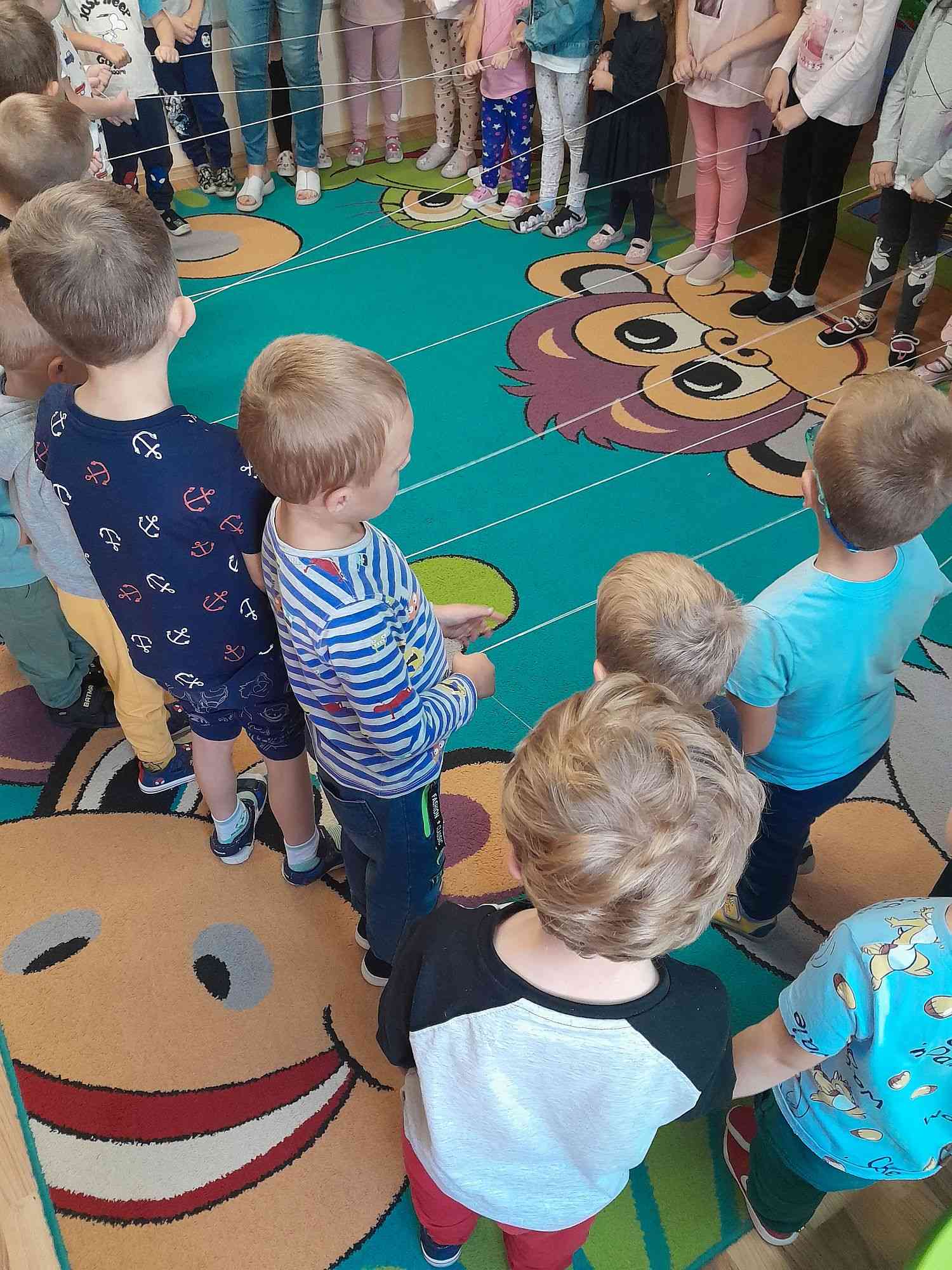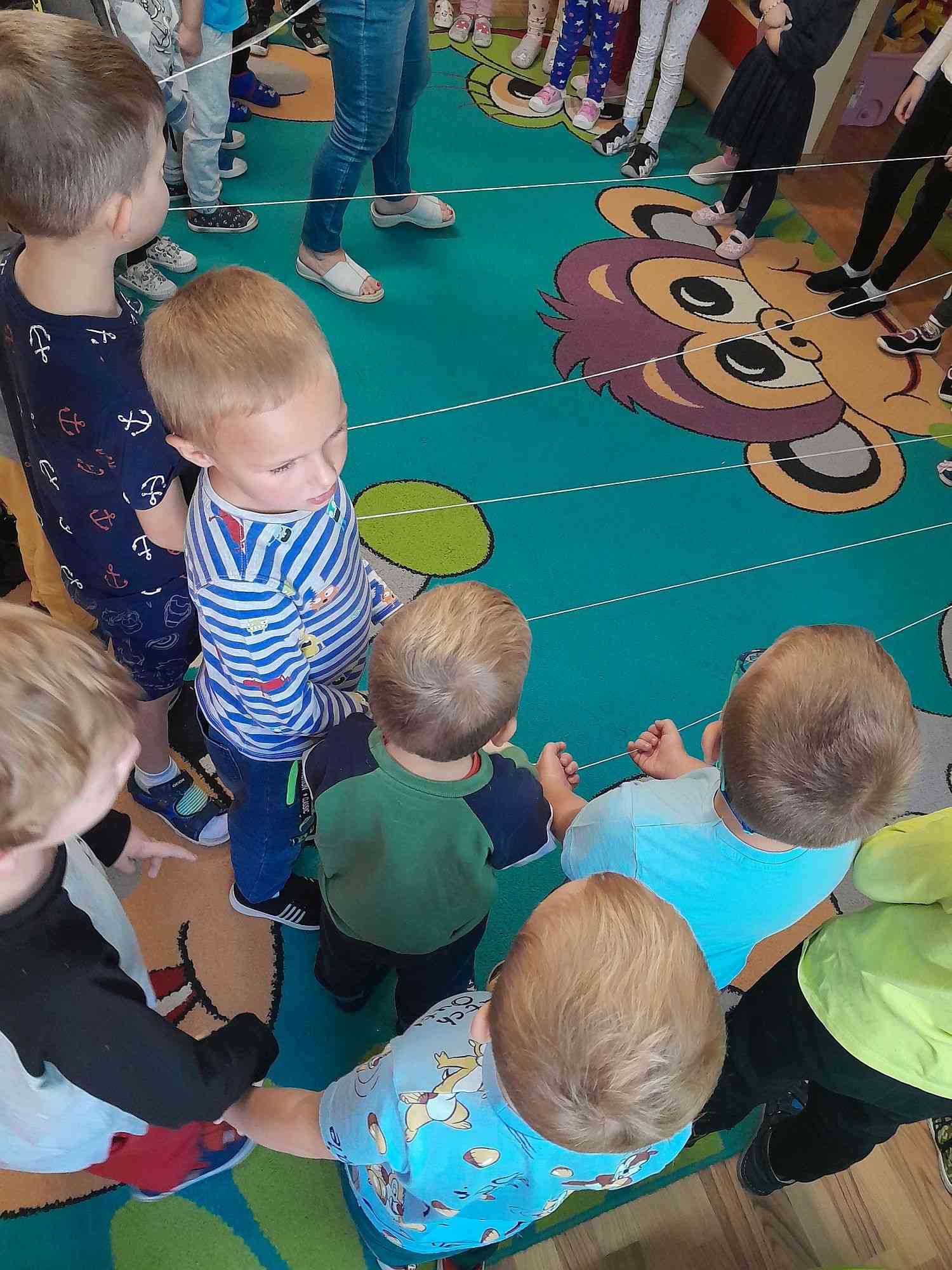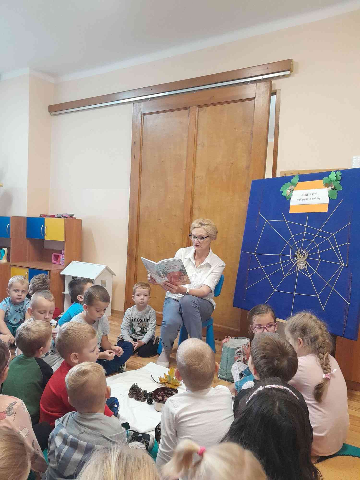 Dzieci poznały zjawisko babiego lata, kiedy występuje, jak powstaje, jak wygląda i do czego służy pająkom. Nie zabrakło zabawy ruchowej, podczas której śpiewano piosenkę „Pajączek” i pleciono pajęczą sieć, na koniec przerwaną przez nieznanego intruza.