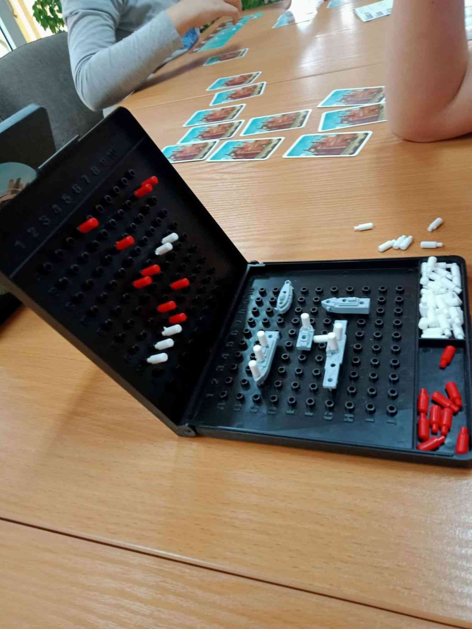 W czwartek, 30 października, w bibliotece w Porębie Żegoty odbyło się kolejne spotkanie naszego klubu planszowego! Tym razem na stole pojawił się naprawdę zróżnicowany zestaw gier – od lekkich i rodzinnych tytułów po nieco bardziej strategiczne pozycje. Tym razem uczestnicy poznali grę Flotylla, która jest tradycyjną grą w statki rozgrywaną przy pomocy figurek okrętów. Zasady są bardzo proste. Każdy z graczy ma dwie tablice, na jednej rozmieszcza sylwetki swoich statków i miejsca trafień przeciwnika, a na drugiej zaznacza swoje trafienia i chybione strzały. Wygrywa ten, kto pierwszy trafi wszystkie okręty przeciwnika. Całe spotkanie przebiegło w znakomitej atmosferze – było sporo śmiechu, zdrowej rywalizacji i okazji do odkrywania nowych tytułów. Dziękujemy wszystkim uczestnikom za wspólną zabawę i zapraszamy na kolejne spotkanie!