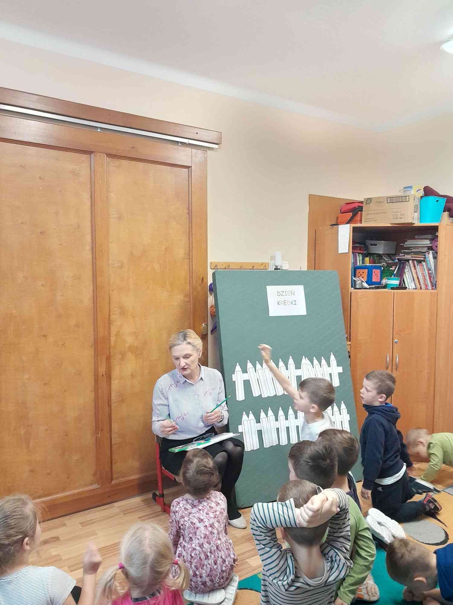 Dnia 13.11.2023 r. odbyło się spotkanie z przedszkolakami z Grojca, które świętowały Dzień Kredki.