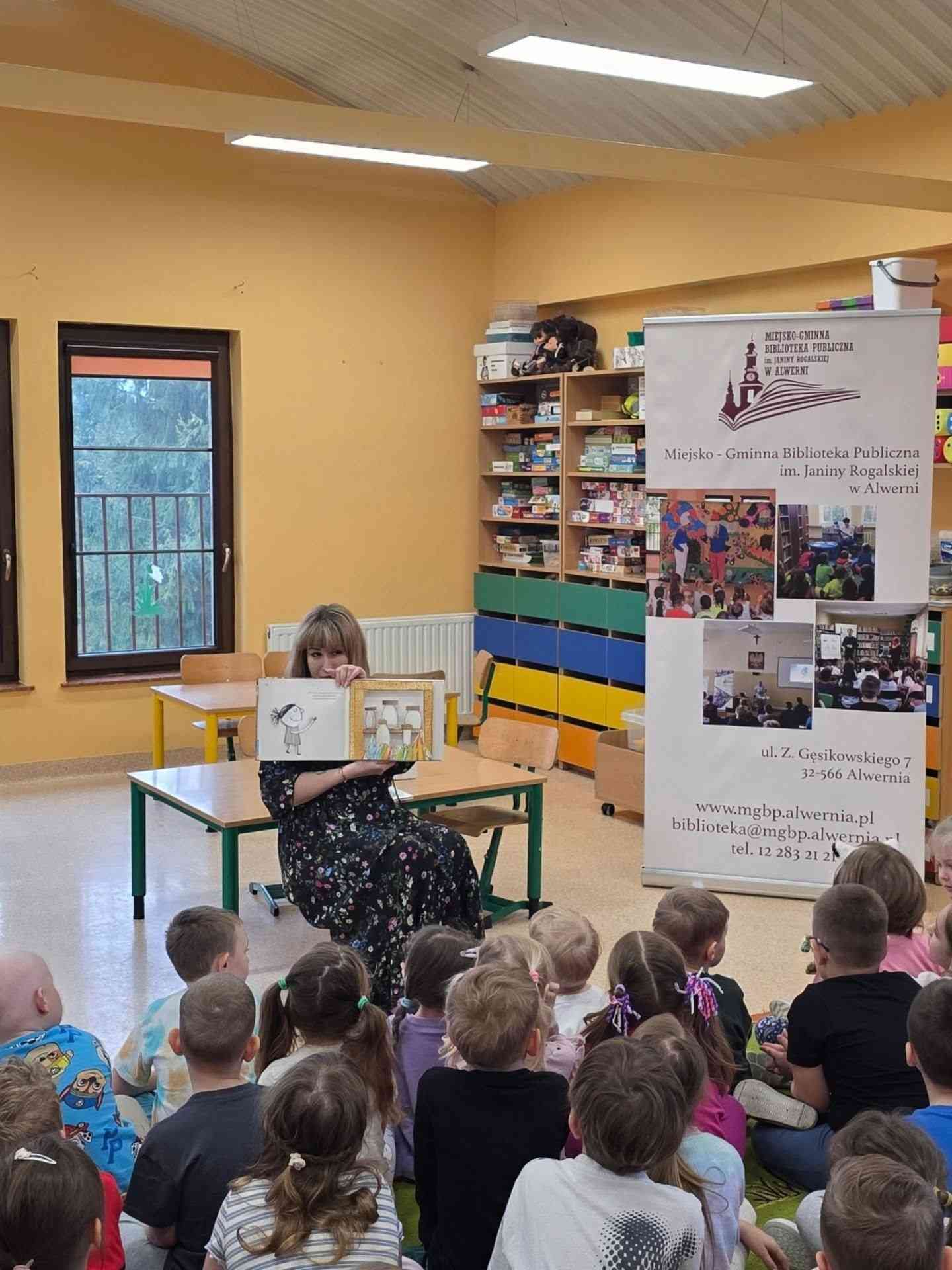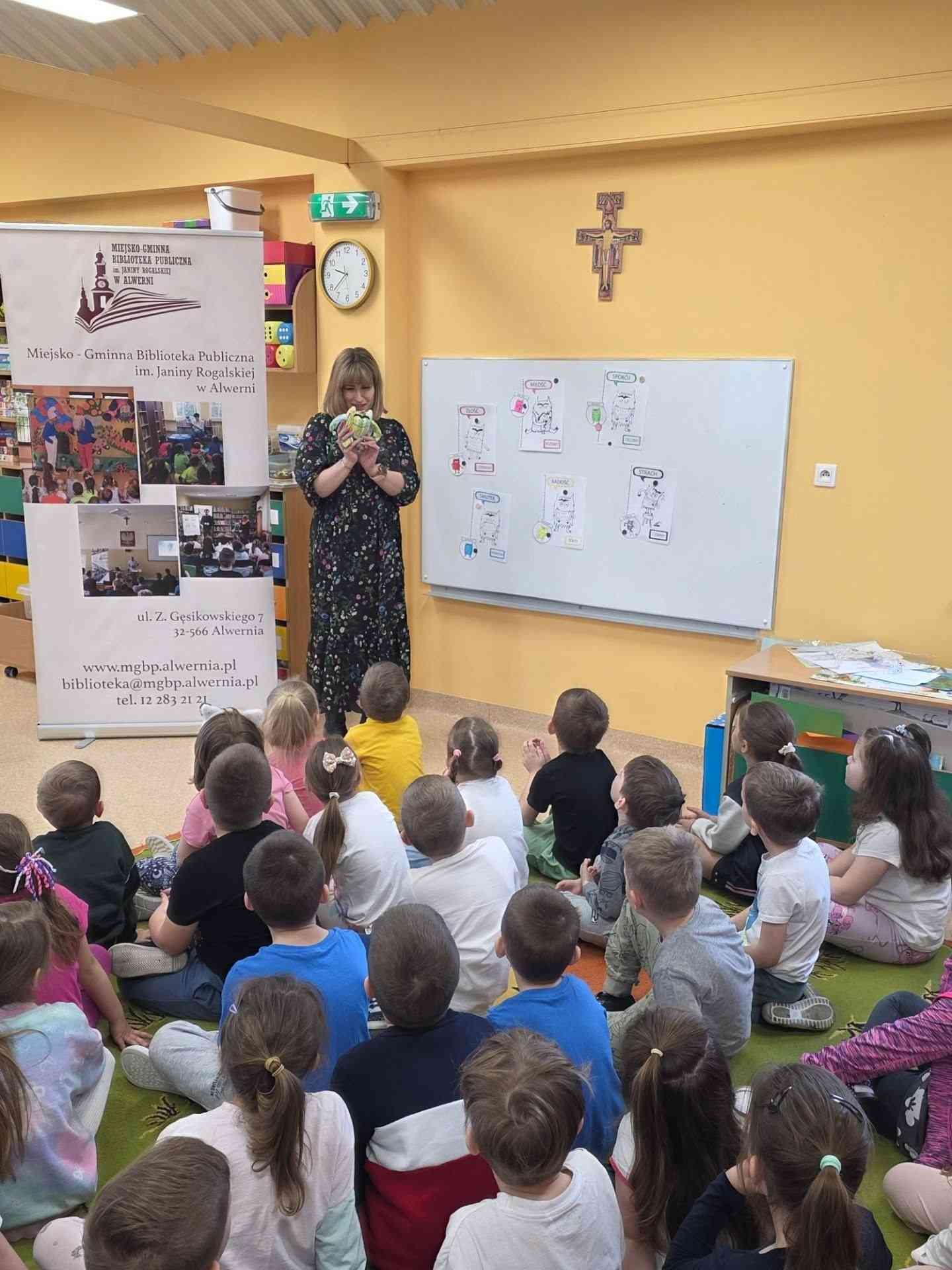 15 kwietnia 2026  odwiedziliśmy Przedszkole „Tęczowa Kraina” Alwerni w ramach Dyskusyjnego Klubu Książki . Tym razem mali czytelnicy wysłuchali opowieści „Kolorowy potwór” autorstwa Anny Llenas . Bohaterem książki jest potwór, którego emocje zupełnie się poplątały – sam nie wie, co czuje! Każdej emocji przypisany jest inny kolor, co w prosty i zabawny sposób pomaga zrozumieć własne uczucia . Po lekturze przedszkolaki wzięły udział w grze, dzięki której uczyły się rozpoznawać i nazywać emocje. Nie zabrakło także rozmów o tym, jak radzić sobie z tym, co czujemy. Wspólnie doszliśmy do wniosku, że każda emocja jest ważna i potrzebna.