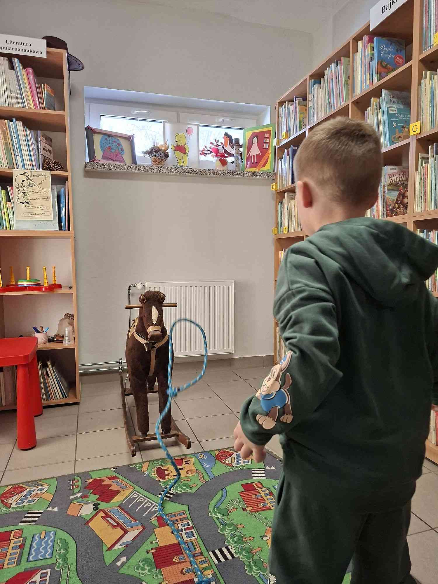 20 stycznia 2026 roku Bibliotekę w Kwaczale odwiedziły przedszkolaki. Tym razem dzieci przeżyły niezwykłą przygodę przenosząc się na Dziki Zachód. Inspiracją do tej podróży była opowieść pt. „Antek z babcią na Dzikim Zachodzie”, dzięki której dzieci mogły poznać fascynujący świat kowbojów. Po wysłuchaniu opowiadania przedszkolaki wzięły udział w różnorodnych zadaniach takich jak: łapanie konia na lasso, rzucanie podkową czy strzelanie do celu, niczym prawdziwy szeryf. Na zakończenie poszukiwały złota, co wywołało mnóstwo śmiechu i radości. Przygody na Dzikim Zachodzie z pewnością długo pozostaną w pamięci przedszkolaków.