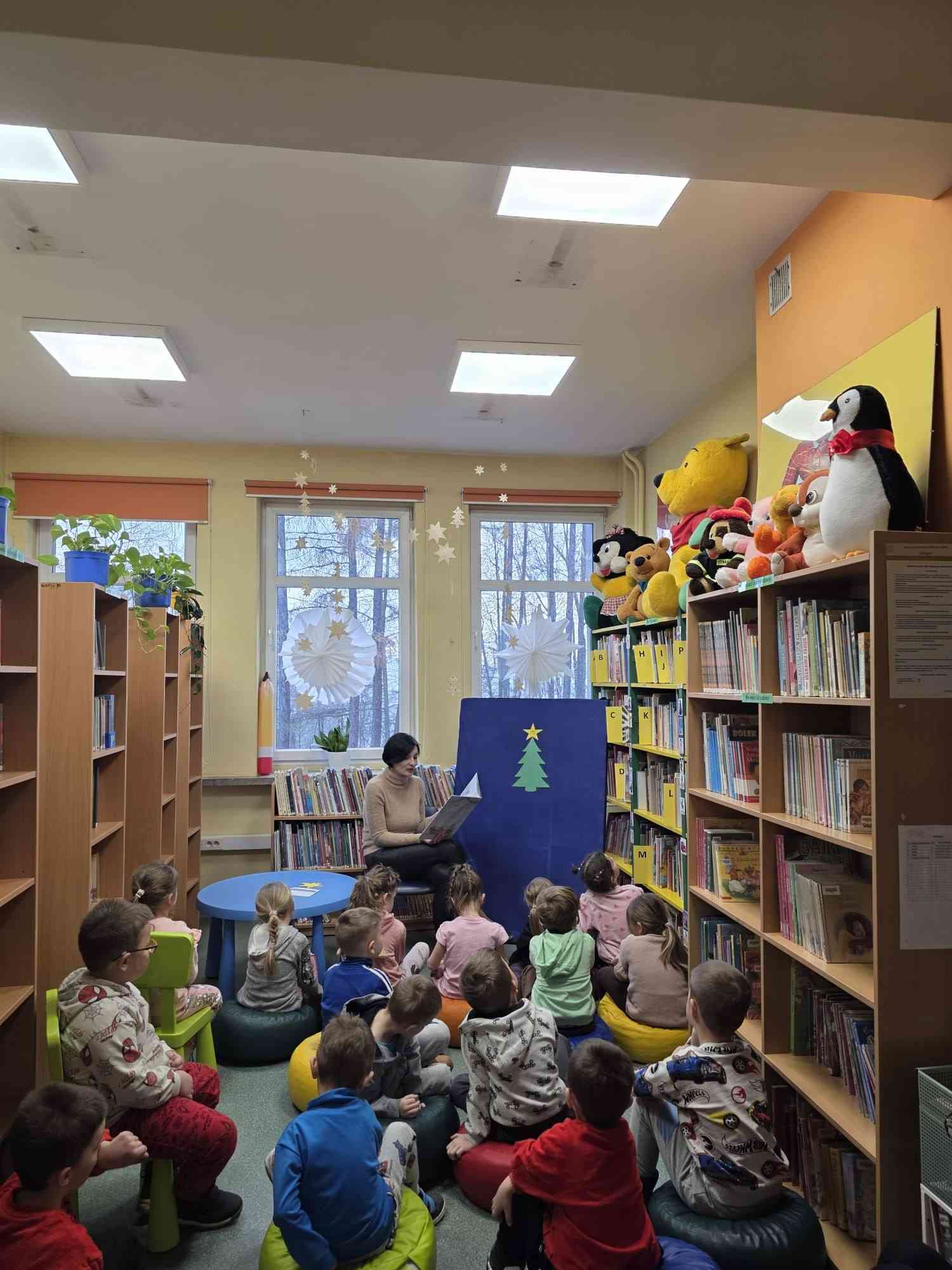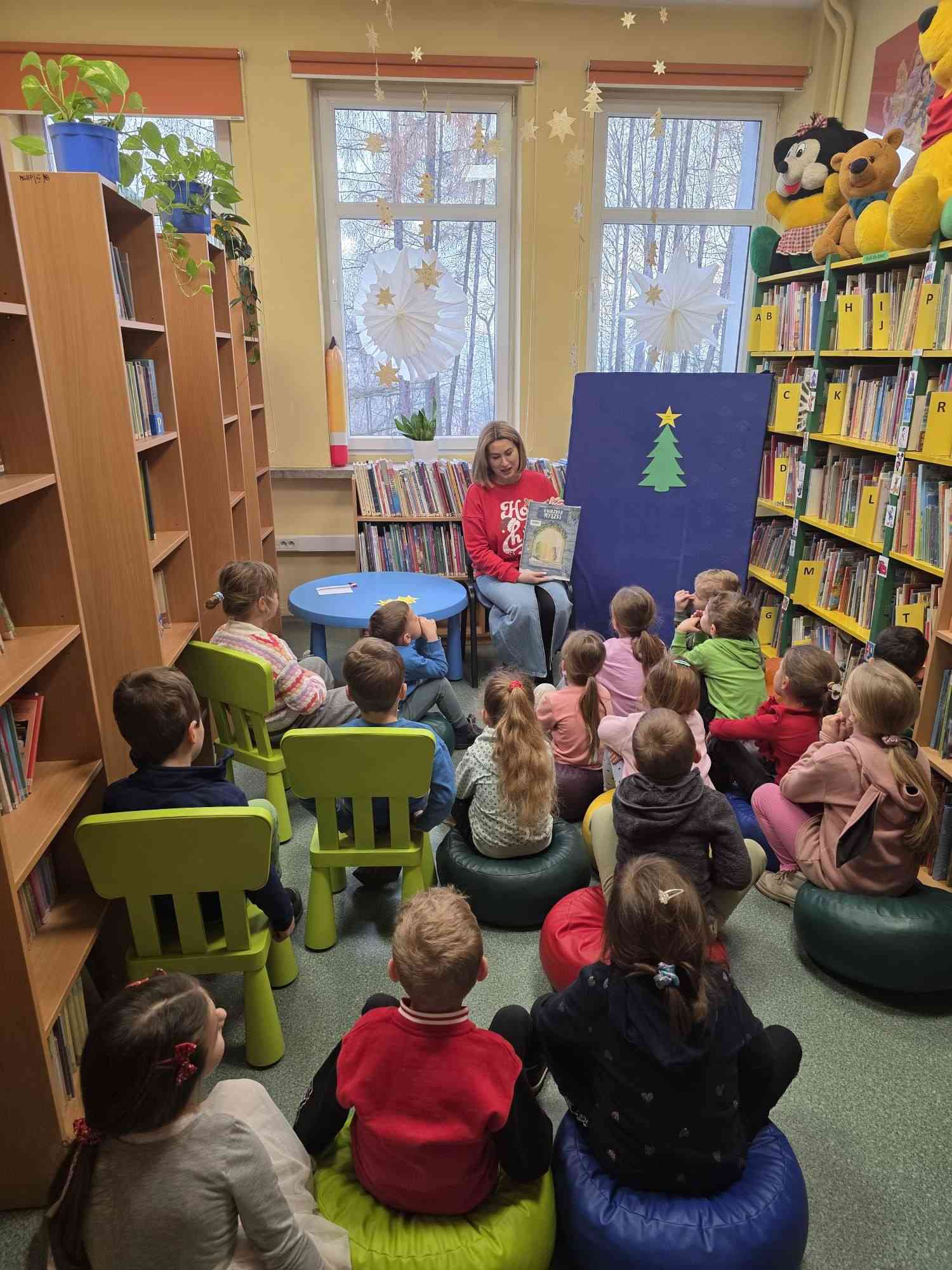 17 grudnia 2025 r. dzieci z Przedszkola „Tęczowa Kraina” w Alwerni odwiedziły bibliotekę. W ramach  Dyskusyjnego Klubu Książki wysłuchały książki Isabelli Paglii „Gwiazdka myszki” – ciepłej, świątecznej opowieści o małej myszce, która poprzez drobne gesty życzliwości pokazuje, jak ważne są dobre uczynki, empatia i wrażliwość na potrzeby innych. Po lekturze odbyła się rozmowa na temat treści książki oraz znaczenia pomagania innym na co dzień. Dzieci chętnie wypowiadały się, podawały przykłady dobrych uczynków i dzieliły się własnymi doświadczeniami. Na koniec wspólnie stworzyliśmy świąteczną choinkę dobrych uczynków.